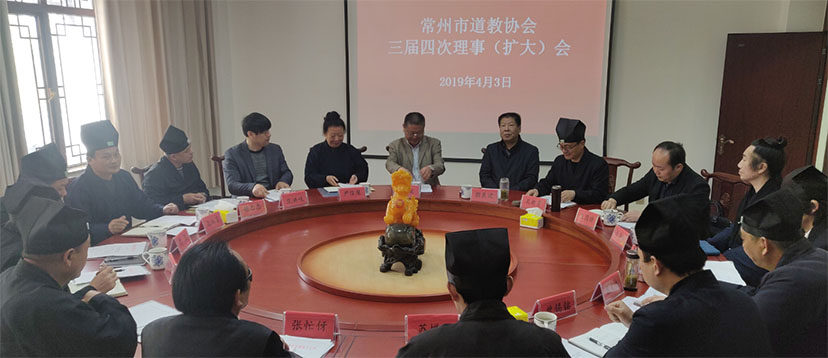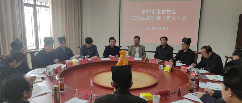 2019年4月3日上午,市道教协会在金坛茅山乾元观召开三届四次理事(扩大)会议。市民宗局副局长颜良进出席会议并作重要讲话,市道协理事及各场所负责人参加会议,会议由市道协会长孔新芳道长主持。