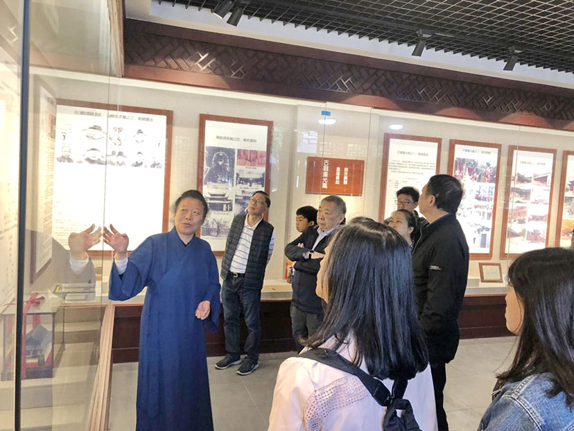茅山乾元观住持尹信慧道长热情接待参访团一行,并陪同朝拜祖师、参观陈列馆等处,介绍道脉发展历程。