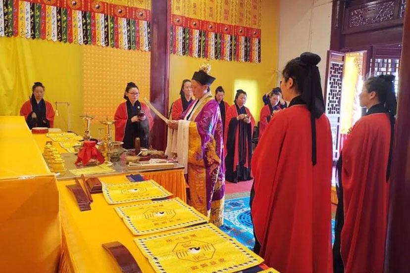 2019年5月22-30日,为庆祝中华人民共和国成立七十周年,由无锡市道教协会主办,无锡市白云观承办的己亥年“太上祝国裕民黄籙大醮” 法会隆重举行。茅山乾元观住持尹信慧道长携经乐团应邀参加,与北京白云观、兰州白云观、陜西龙门洞、洛阳下清宫共130余位法师一同依科演教,祝圣朝真,祈福世界和平,国运昌盛,人民安康,道业兴隆。