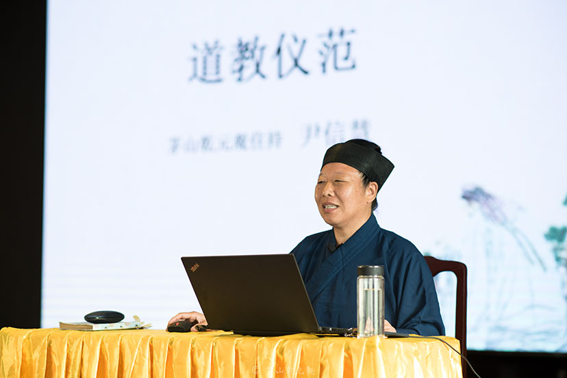 茅山乾元观住持尹信慧道长为皈依弟子讲授《道教仪范》,并重点就皈依、持戒、诵经三个方面进行深入阐释,为皈依弟子开示作为在家的皈依弟子如何进行日常修持。