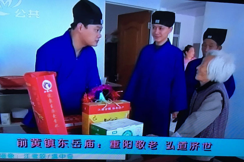 相关文章 2016-10-10东岳庙开展重阳节敬老活动 东岳庙开展重阳节敬老活动 发布时间:2016-10-10来源:武进道协作者:admin点击: 2016年10月9日重阳节当天,武进区东岳庙全体道长在场所负责人曾锡铭道长的带领下,对前黄敬老院及东岳庙周边近50位老人进行了慰问,给他们送去了总价值近8000元的重阳糕和生活用品。 (武进道协)