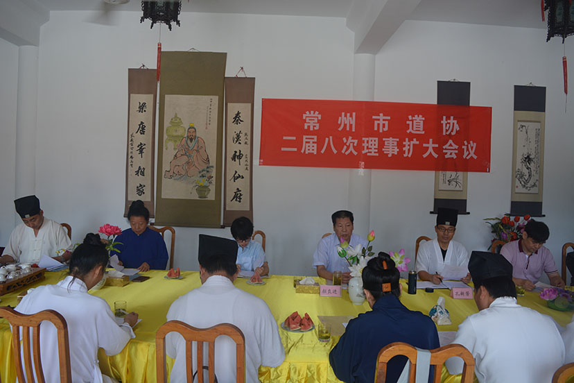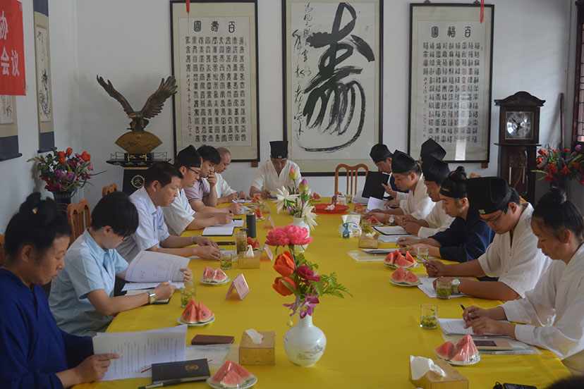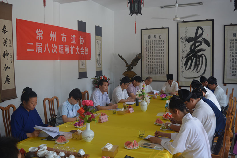 2015年8月12日,市道协在茅山乾元观召开了二届八次理事扩大会议。市道协理事、重点场所负责人、市道协驻会工作人员共13人参加了会议。市民宗局副局长颜良进应邀出席并讲话。