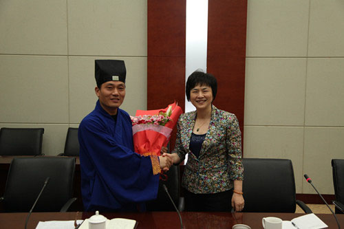 会上,张跃部长、赵世平局长代表市委统战部、市民宗局对孔新芳、尹信慧当选省道协副会长表示热烈的祝贺,并殷切地希望市道协的各位理事们要坚持爱国爱教,维护道教稳定,促进社会和谐;要加强自身修养,树立良好形象,发挥积极作用,努力使常州道教再上一个更高的台阶。
