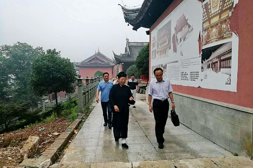 2017年6月21日上午,省宗教事务局巡视员顾传勇赴茅山乾元观,就申请设立江苏道教学院的相关筹备工作进行专题调研。省宗教局宗教一处调研员兼省道教协会秘书长许兵、人教处副调研员赵华,省道教协会会长杨世华、办公室主任肖俊,金坛区民族宗教事务局局长柏虎斌陪同调研。