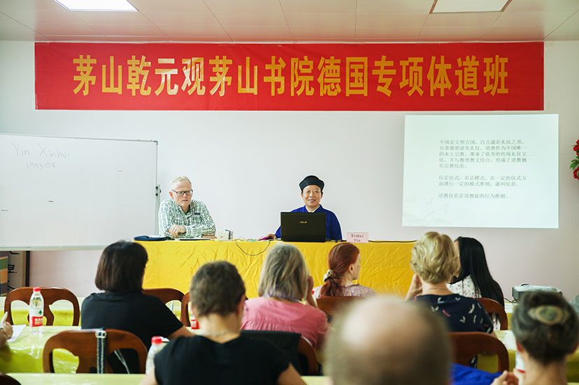 德国专项体道班由德国奥尔登堡大学联合气功专业协会波尔兹博士组织,华人翻译胡伟青女士带队。胡女士介绍,现在欧洲国家很多人都喜欢中国传统文化,其中德国人为最,很多家庭都有《道德经》,他们也很向往到中国来学习、体悟中国道教文化。此次体道,缘于波尔兹博士多年前来中国学术交流时,经友人介绍到访过茅山乾元观,对这个清静道场印象深刻。后又经多位学者推荐,最终来到茅山乾元观,与道结缘。
