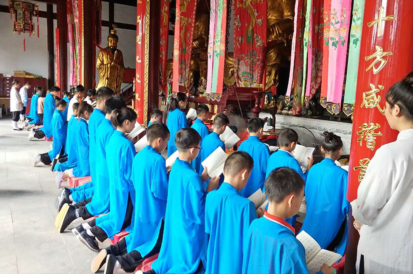 2018年7月21日,茅山乾元观茅山书院接待了来自全国各地34位少儿的游学活动,组织安排了二十多位老师、道长、义工参与教学及后勤保障。