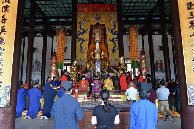 下午14时,在演道堂举行主题为“辉煌七十载 共筑中国梦”的道情会,道众与信众代表通过演唱《国家》、《中国人》,诗歌朗诵《爱国爱教我的责任》,葫芦丝《映山红》,武当太极,古琴独奏,越剧选段等丰富多彩的演艺形式,将爱国爱教的情怀完美融为一体,讴歌了新时代,表达了对祖国母亲的感恩之心,向新中国70周年华诞倾情献礼。