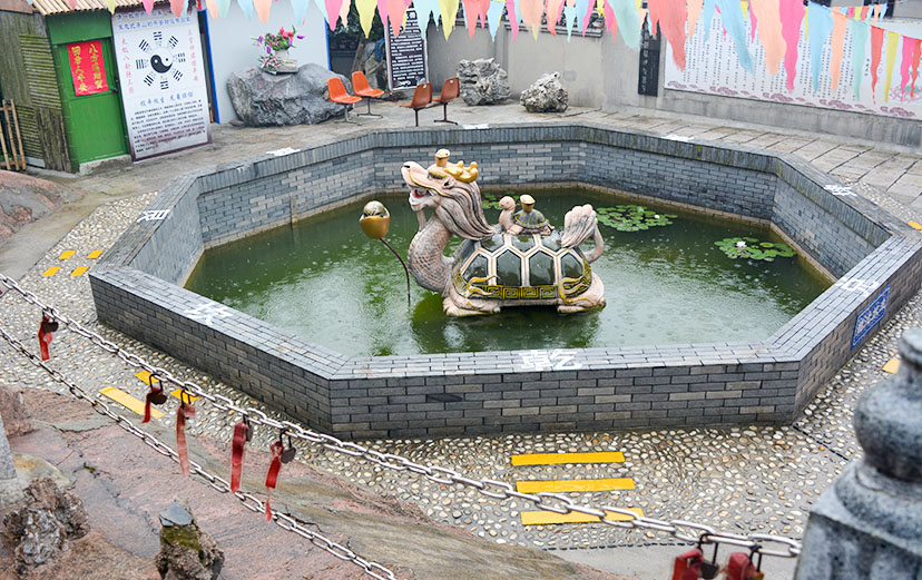 出山门殿有一个狭长的庭院,院东有一浅水池,叫:玉津池。池中有龙龟赑屃戏水。