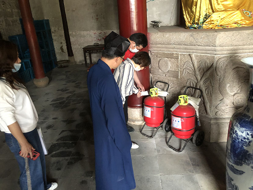 一行检查组现场查看了白龙观的各项消防安全设施,了解了场所的安全应急预案情况,检查了白龙观的安全消防台账。常州市道教协会会长、白龙观住持孔新芳道长向一行领导汇报了场所近阶段以来的各项工作,尤其是场所的安全专项整治工作的各项措施和方法。