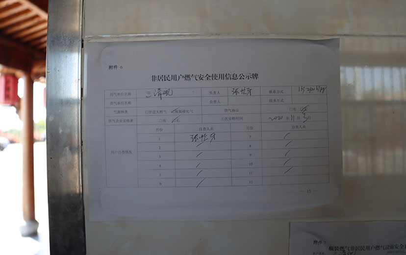 二、强化督导,狠抓落实。切实履行团体督查职能,成立安全督导小组,于4月2日-5日,对茅山乾元观、横山白龙观、嘉泽花神宫、新北万绥东岳庙等10家场所进行了安全工作抽查。督导小组就场所消防器材、监控设备、人员测温登记、安全预案、应急隔离点、安全疏散通道等重点部位进行了检查,尽心尽力尽责做好安全督导工作不放松。