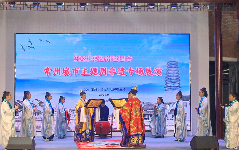 5月22-23日,茅山乾元观坤道仙乐团应邀参加2021年扬州世界园艺博览会,作为常州市非物质文化遗产的代表展演道教音乐。
