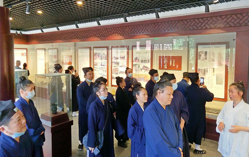 5月25日,杭州市道教协会副会长兼秘书长张崇达道长、副会长王崇坤、王崇华道长等一行27位道友来到茅山乾元观参访交流,开展红色之旅活动。金坛区道教协会会长倪雪斌道长陪同。