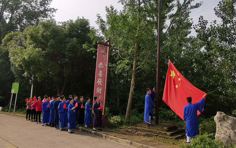 全市道教场所隆重举行升国旗唱国歌仪式,《没有共产党就没有新中国》、《歌唱祖国》、《爱我中国》、《我们走在大路上》等一首首爱国歌曲唱响在常州各个道教场所,激昂嘹亮的歌声抒发着道教界人士对党与祖国的热爱。