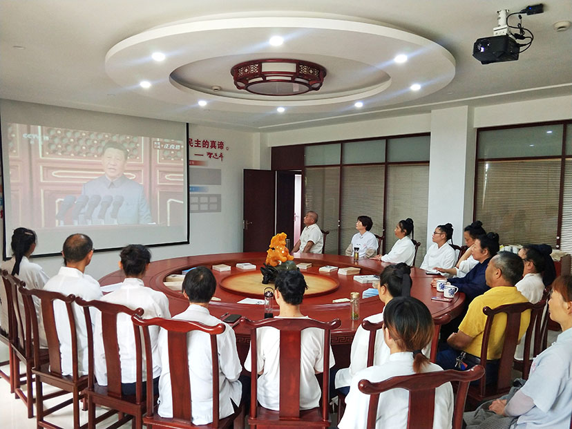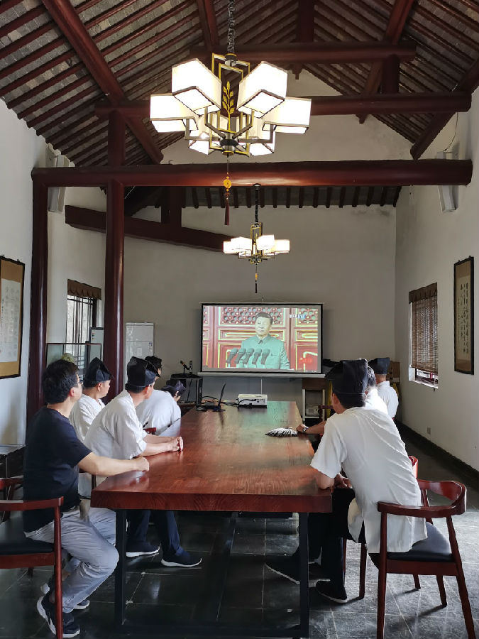 升国旗唱红歌活动结束后,各场所组织在观道众收看了庆祝中国共产党成立100周年大会直播,习总书记凝聚人心、催人奋进的重要讲话引发强烈反响,以史明鉴,中国共产党没有辜负人民的期望,在这百年峥嵘路上,中国共产党团结各族人民艰苦奋战,创造了一个又一个奇迹,带领着全国人民过上幸福安定的日子。全市道教界人士纷纷表示要坚决做好党的拥护者宣传者,做到传统文化和本土宗教的继承者弘扬者,不断增强四个意识,坚定四个自信,做到两个维护,带领广大教众更加紧密的团结在党的周围,始终牢记历史责任感和使命感,深挖道教文化精髓,彰显道教现代价值,充分发挥道教智慧与力量,在中华民族伟大复兴征程上作出道教新的、更大贡献。
