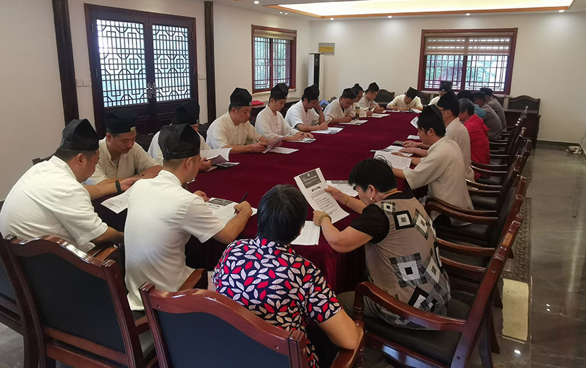 发布时间:2021-09-08来源:白龙观作者:admin点击:为进一步加强白龙观全体道众的法治教育,提高大家尊法、学法、守法、用法的自觉性,9月8日下午,白龙观组织全体道众开展了“2021年民族宗教政策法规学习月”活动,学习活动由常州市道教协会会长、白龙观住持孔新芳道长主持。