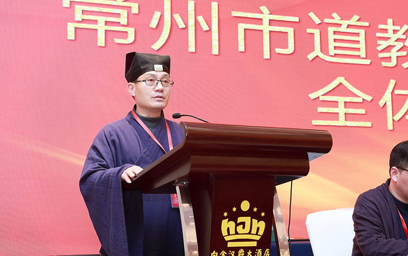 常州市道教协会第三届理事会会长孔新芳道长作工作报告