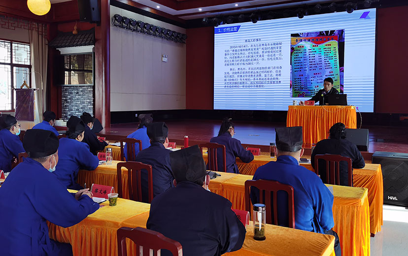 下午,区道协邀请区市场监督管理局药品与医疗器械监督管理科科长张亮为大家进行经营活动知识宣讲。从价格监管、广告宣传、医疗广告、食品安全、消费者权益保护、投诉处理技巧等方面结合实际案例为大家讲解,指出场所日常活动中会出现的问题以及预留的隐患等,并知道大家发生投诉事件的处理技巧。