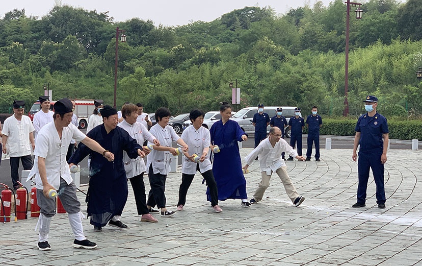 主题培训活动邀请金坛区薛埠专职消防队中队长张劲松带领全体参训人员进行了殿堂疏散应急演练,对现场应急疏散注意事项详细讲解。疏散应急演练结束后,张队长还根据林区森林消防情况为大家讲解了灭火器、灭火弹的使用方法和注意事项,参训人员均上手实际操作,充分掌握了灭火器材的正确使用方法和扑救流程。