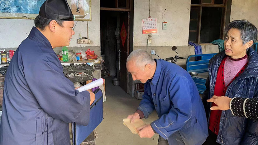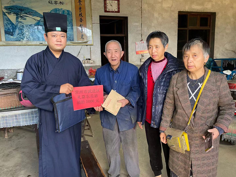 11月15日,武进区礼嘉东岳庙负责人曾锡铭通过礼嘉大路村委引介,慰问一户特困家庭,给老人送上5000元慈善慰问款。