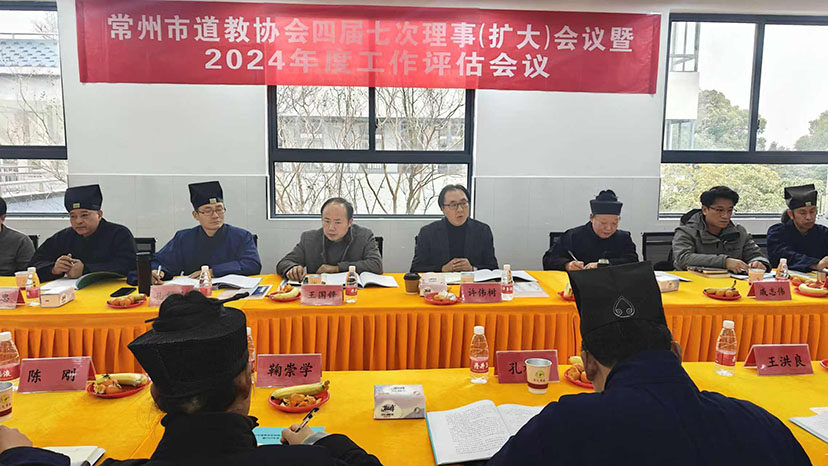 1月14日,常州市道教协会在江苏省道文化艺术中心召开四届七次理事(扩大)会议暨2024年度工作评估会议。市道协第四届理事会成员,市、区道协驻会工作人员以及信众代表参加会议。市民宗局副局长许伟树应邀出席会议。会议由市道协常务副会长孔新芳主持。