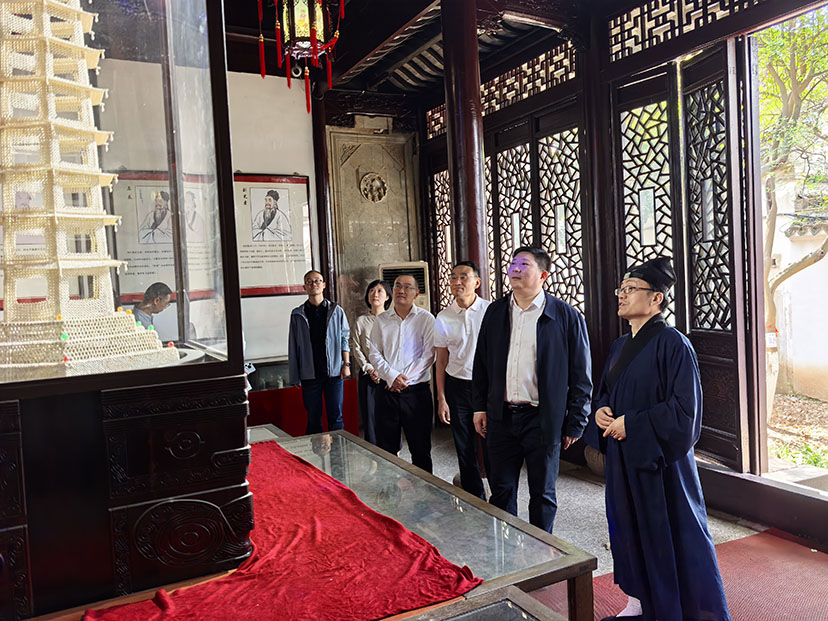 发布时间:2025-05-14来源:作者:点击:5月13日上午,常州经开区党工委书记丁一率区党群工作部(民宗局)、文体旅局等部门主要负责人在横山桥镇党委书记赵文明的陪同下莅临白龙观,就白龙观的道教文化及文旅建设情况进行了调研。