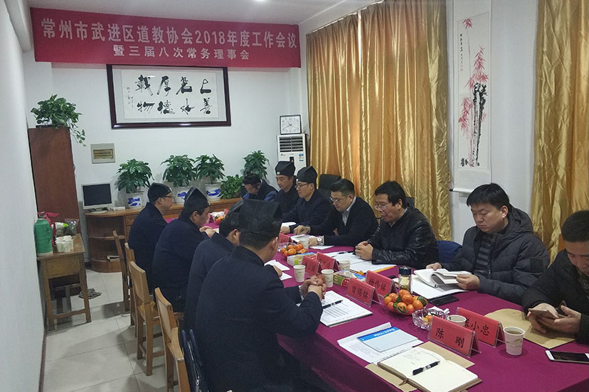 2019年1月30日上午,武进区道教协会2018年度工作会议暨三届八次常务理事会在遥观将军观召开。武进区委统战部副部长、区民宗局局长蒋金标,副局长薛怀德等领导,区道协常务理事、道协办公室工作人员15人参加了会议,会议由区道协副会长、将军观负责人王洪良道长主持。