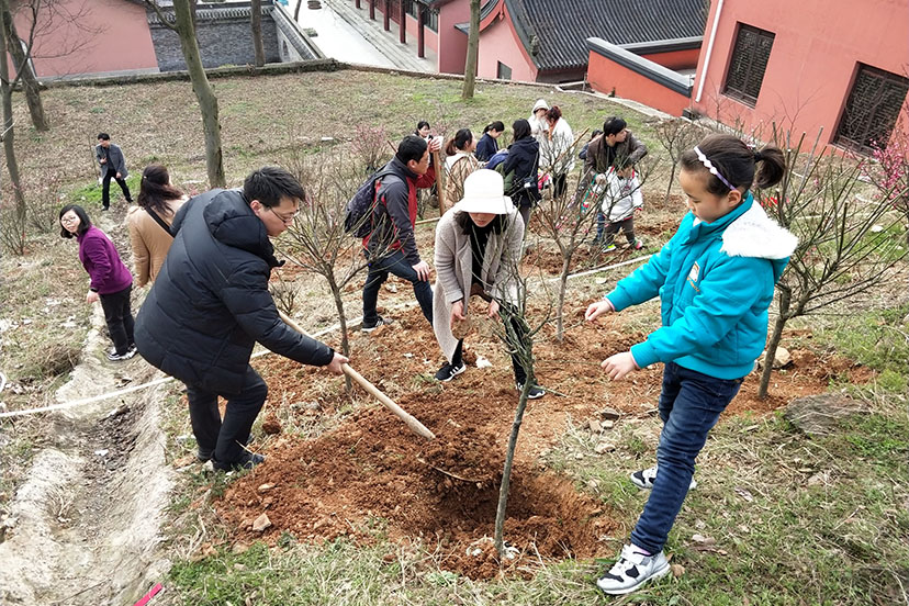 2019年3月10日,茅山乾元观联合民盟金坛区委机关支部、大雅传统文化研究会、华罗庚实验学校综合实践组开展义务植树活动。