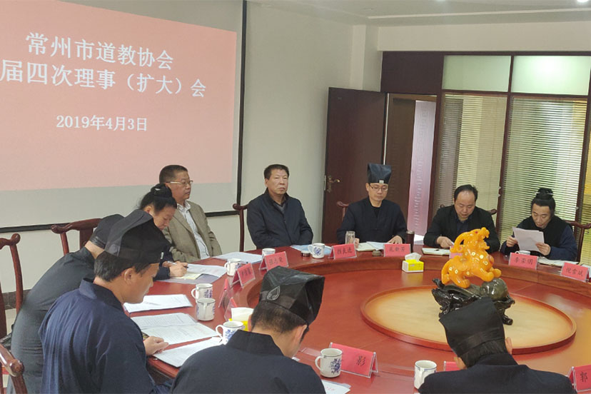 2019年4月3日上午,市道教协会在金坛茅山乾元观召开三届四次理事(扩大)会议。市民宗局副...