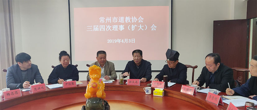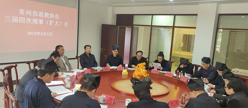 2019年4月3日上午,市道教协会在金坛茅山乾元观召开三届四次理事(扩大)会议。市民宗局副局长颜良进出席会议并作重要讲话,市道协理事及各场所负责人参加会议,会议由市道协会长孔新芳道长主持。
