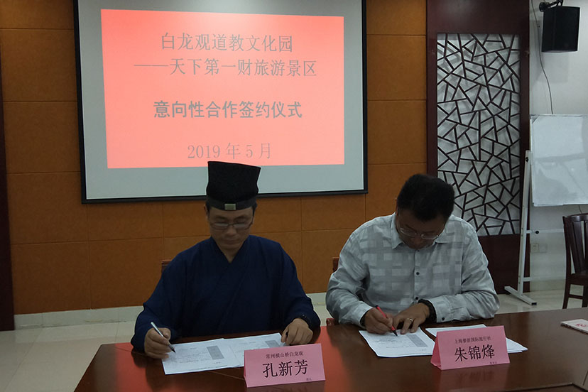 座谈会上,45家旅行社的部分代表还就白龙观后期的宗教文化旅游开发等事宜,与白龙观签订了“白龙观道教文化园旅游景区意向性合作协议”,以更好地推动白龙观在上海的知名度。