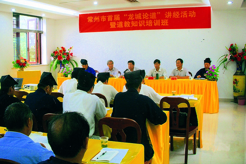 为弘扬道教文化,培养道教后备人才,市道协于2011年8月26-27日在茅山乾元观举行了道教知识培训班暨首届“龙城论道”讲经活动,来自全市各道教场所负责人,道教教职人员40余人参加了培训。
