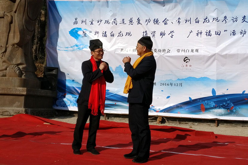 2016年12月17日,苏州玄妙观尚道慈爱功德会参访交流暨祈福白龙观 捐资助学 广种福田活动在常州白龙观举行。来自苏州玄妙观尚道慈爱功德会的会员120余人参加。常州市民宗局副局长颜良进、武进区民宗局副局长薛怀德以及苏州市民宗局等领导应邀出席,并分别致辞。