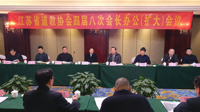 2017年2月20-21日,江苏省道教协会四届八次会长办公(扩大)会议在常州武进召开。省道教协会副秘书长以上人员近28人参加了会议。省宗教事务局副局长周伟文,省委统战部领导,常州市委统战部副部长、市民宗局局长徐靖德,副局长颜良进,武进区委统战部副部长、区民宗局局长蒋金标等领导出席了会议。省道教协会秘书长许兵主持会议。