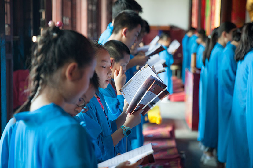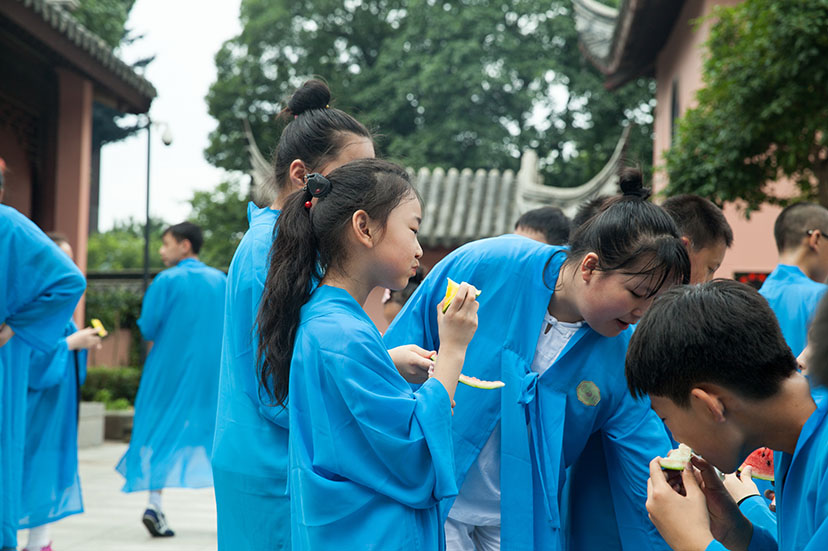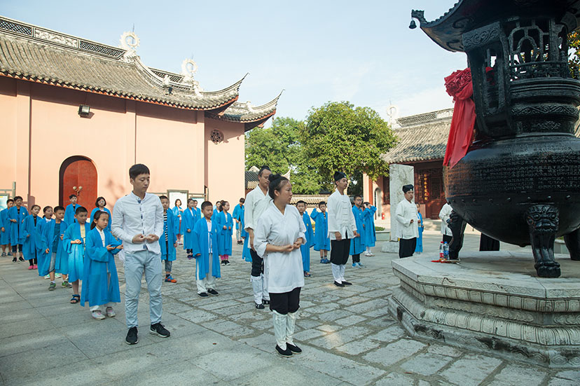 2017年7月12-18日,乾元观茅山书院第三期“慧心养德”少儿修学班开业授课,来自北京、江西、浙江、上海、河南、湖北、江苏等全国各地的35位学员参加。在这个跨越了两千多年历史的古观里,正式开启体悟中华优秀传统文化之旅。开班当日,住持尹信慧道长为学员们开示,并就《传统礼仪》与日常言行仪范进行了讲授。