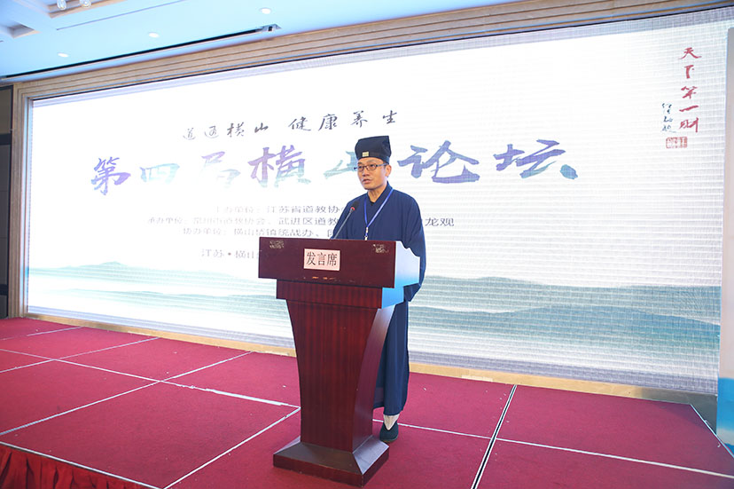 白龙观住持孔新芳道长致欢迎词,常州市委统战部副部长、市民宗局局长杨光在开幕式上致辞后,由省道协杨世华会长讲了话,他对常州道教界连续四年举办横山论坛表示了高度肯定。他强调,此届“横山论坛”将道教文化与养生文化进行交流互融,从而进一步挖掘和展示道教养生文化的内涵,贴近百姓健康生活,具有较强的现实意义。他指出,道教对人的生命如此关切,人人都需要健康,人人都需要长寿,而此届横山论坛以“道通横山,健康养生”为切入点,正是反映了道教的“仙道贵生,无量度人”的哲理。他希望横山论坛在常态化的基础上,能够办出特色、办出效益,为江苏乃至全国的道教发展提出一些真知灼见,同时也为常州乃至江苏的地方经济发展做出应有的不可替代的贡献。