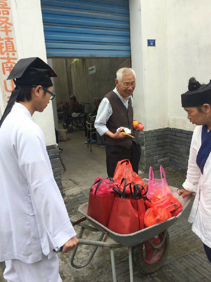 花神宫自成立合法宗教活动场所以来,一直秉承着道教“齐同慈爱济世利人”的慈善理念,尽自身能力,积极回向十方,服务社会。每逢初一十五,传统节日,都有常住道长带领护法居士,为老街养老院的老人送去大道的祝福。在这份没有间断的服务中,花神宫李理云道长逐渐成为了老人们心中的“亲人”,每次都会和老人们亲切攀谈,为他们梳理头发,打扫居所,使这些深居养老院的老人,感受到家庭以外的又一份温暖,使他们的晚年更加温馨。