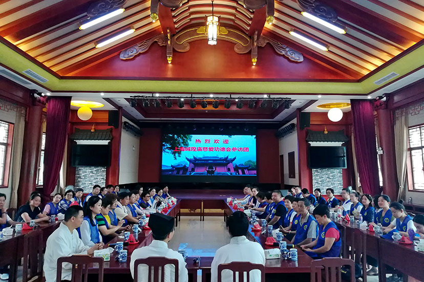 2018年8月12日上午,上海城隍庙慈爱功德会参访团一行52人在周旭道长的率领下莅临茅山乾元观开展参访交流活动。