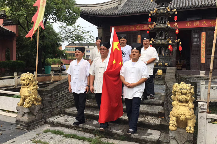 2018年9月3日,新北区万绥东岳行宫负责人孔林芳道长带领在观全体道众举行抗日战争胜利73周年纪念活动暨升国旗及和平祈祷法会,以实际行动表达爱国爱教情怀,纪念英烈,祈愿世界和平、国家繁荣昌盛。