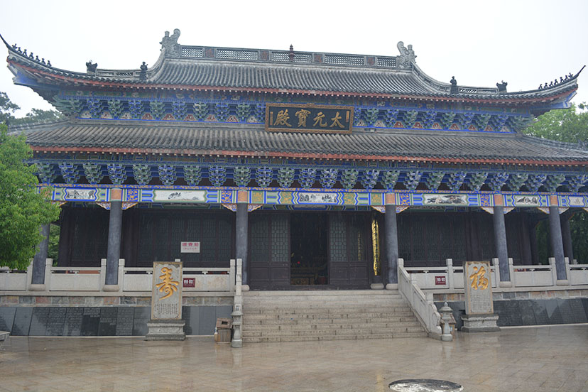 从金牛洞折东再攀上36级石阶,到达顶峰太元宝殿。殿阔30米,高达 24.8米,彩绘斗拱,殿内供奉三茅真君:茅盈、茅固、茅衷和四大元帅:岳飞、赵公明、马勝、温瓊及神仙岛36箓神仙。香客到此祈福崇寿,有求必应。有“茅山第一灵签”之说。