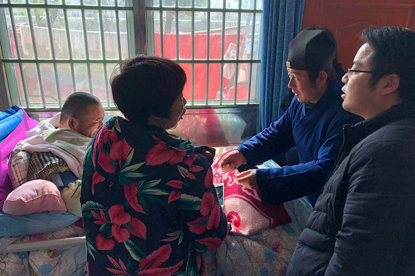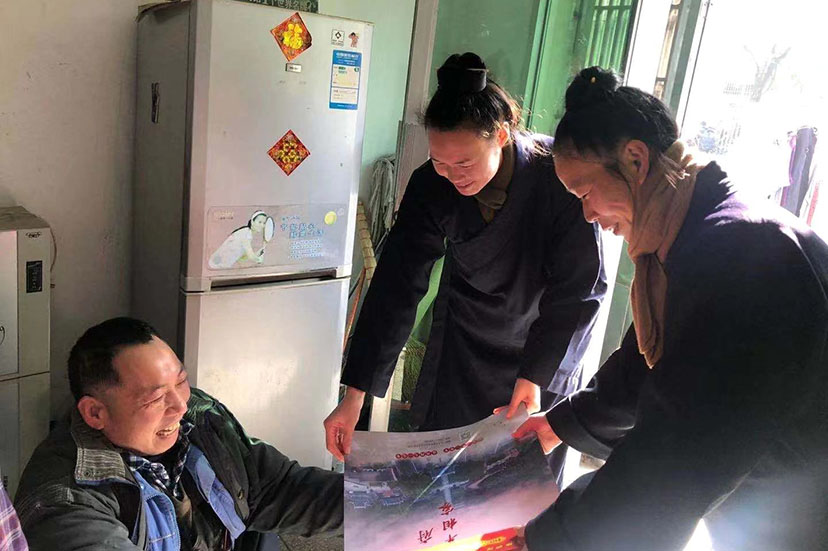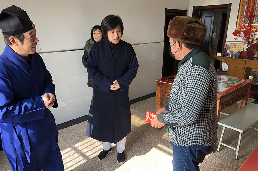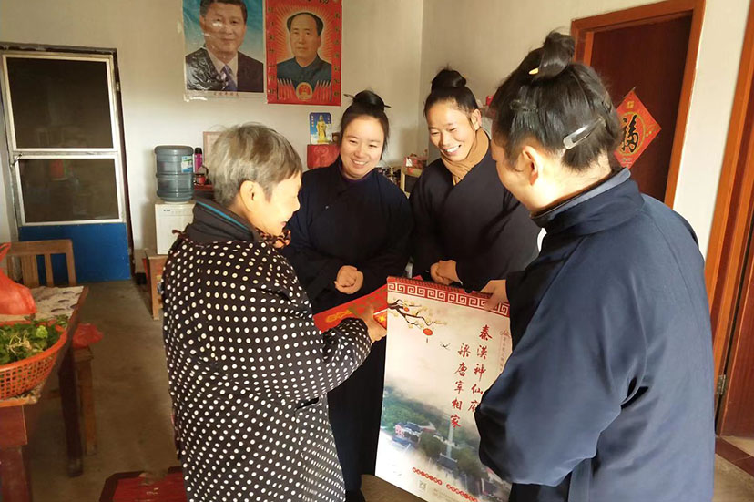 在走访慰问过程中,倪雪斌会长与村民亲切交谈,详细询问他们的家庭情况、细心叮嘱他们要好好保重身体。嘱咐他们要注意身体,树立信心,克服困难,争取早日过上好日子,将新年祝福和温暖和道教慈悲善爱的情怀送到他们的身边。随后,区道协各位道长深入贫困村民家中走访慰问,为困难家庭送上新春慰问金和生活用品。
