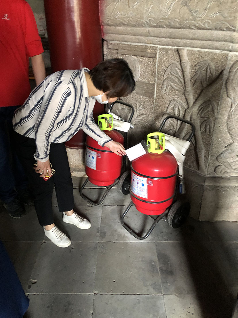 一行检查组现场查看了白龙观的各项消防安全设施,了解了场所的安全应急预案情况,检查了白龙观的安全消防台账。常州市道教协会会长、白龙观住持孔新芳道长向一行领导汇报了场所近阶段以来的各项工作,尤其是场所的安全专项整治工作的各项措施和方法。