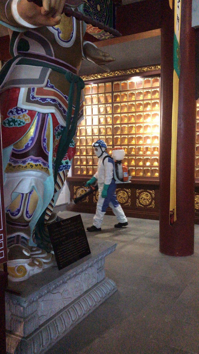 为有效预防和控制新冠肺炎疫情,保护观内值班人员的身体健康,减少聚集性感染疫情的发生,营造一个安全健康卫生的工作环境。3月15日,茅山元阳观在金坛区蓝天救援队的指导下对本观殿堂及办公场所进行了全面消毒工作。
