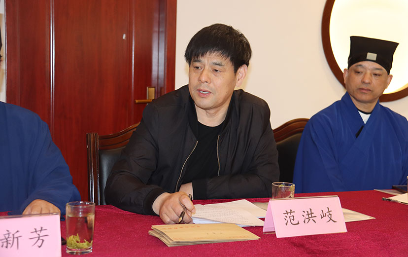 4月21日下午,常州市道教协会三届八次理事(扩大)会议在横山桥白龙观召开,市道协全体理事、全市道教场所负责人及辖市区道协驻会工作人员参加会议,市民宗局副局长许伟树、宗教处副处长范洪岐、常州市经开区民族宗教局局长张军应邀参加。会议由常州市道教协会会长、白龙观住持孔新芳道长主持。