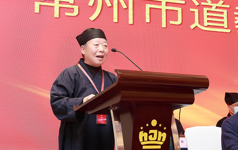 常州市道教协会第三届理事会会长孔新芳道长作工作报告