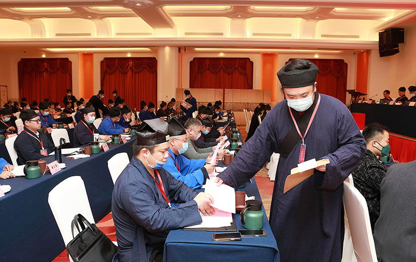 市委常委、市委统战部部长杨芬,省民宗委副主任缪文军,省道协会长尹菊芳分别代表常州市委、市政府和省民宗委、省道协对会议的召开表示热烈的祝贺,向全市道教界代表表示诚挚的问候。在充分肯定市道协过去五年来取得成绩的同时,领导们对常州道教界和常州道协新一届领导班子提出了建议和希望。杨芬希望常州道教界继续发扬爱国爱教优良传统,进一步提高政治站位,广泛开展爱国主义教育学习,坚持道教中国化方向,继续加强人才培养和管理,全面提升教职人员队伍整体素质,深入推进和谐场所规范创建,不断强化团体内部建设,切实发挥团体桥梁纽带和垂范引领作用,带领广大教职人员和信教群众紧密团结在党和政府周围,同全市人民一道为“十四五”规划的顺利实施,为常州高质量发展走在前列贡献智慧和力量。缪文军要求常州市道教协会以本次会议为新的起点,振奋精神、团结一致、拼搏进取,谋长远之策,行固本之举,团结道教界人士和广大信众,为推动我省道教健康、为建设“强富美高”新江苏作出新的更大贡献。尹菊芳希望全体代表继续深入学习贯彻落实党的十九届六中全会精神、全国宗教工作会议、省第十四次党代会和市第十三次党代会精神,以习近平新时代中国特色社会主义思想为指导,紧跟常州市委政府“532”发展战略,勇于担当、奋发作为、开拓创新,为建设“强富美高”新常州,作出我市道教界应有贡献。