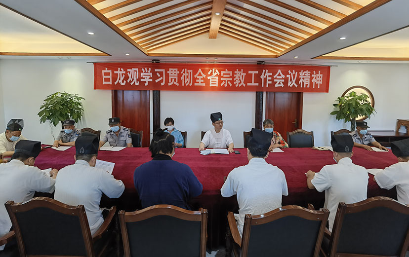 会议传达学习了全省宗教工作会议精神,会议要求道观全体道职人员深入学习贯彻习近平总书记关于宗教工作的重要指示,贯彻落实全省宗教工作会议精神,坚持道教中国化方向,领会和贯彻新时代党的宗教工作理论和方针政策,胸怀“两个大局”、牢记“国之大者”,以实际行动拥护“两个确立”、做到“两个维护”。会议还要求,要把贯彻落实全省宗教工作会议精神与6月份“安全生产月”相关活动相结合、与道观各殿堂的安全专项整治相结合、与疫情防控常态化管理相结合,切实在工作岗位上,体现我们道教界的积极形象,展示我们白龙观的新面貌。