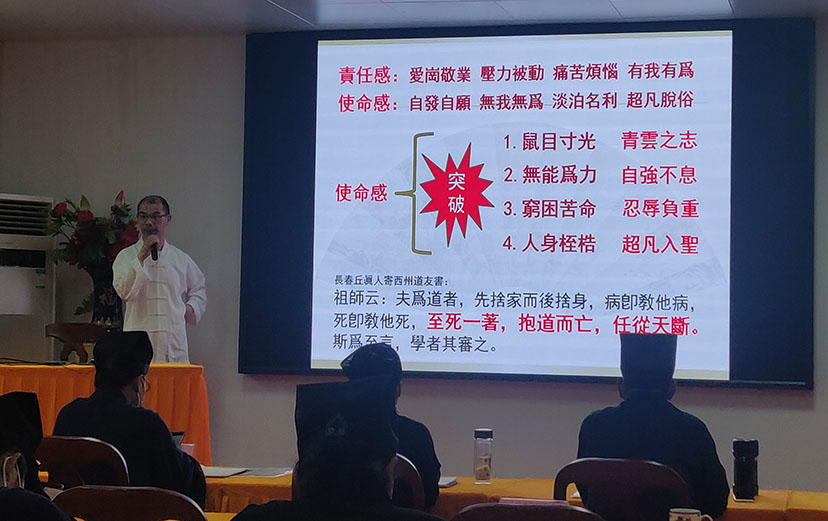培训班中,江苏省道教协会会长、常州市道教协会会长尹信慧道长以现代化宫观管理浅议为课题向学员授课,浙江道教学院特聘教授、茅山书院副院长蒋门马以感悟使命为导向向学员开展了道教文化讲授。