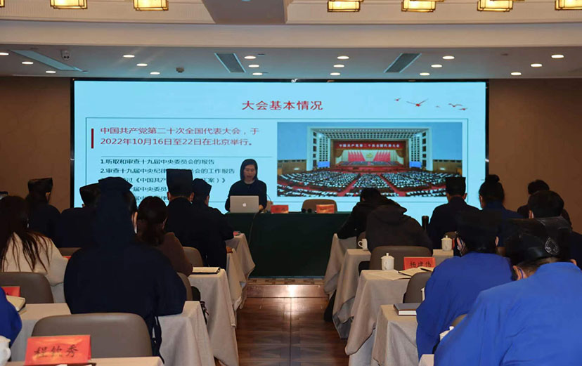 许伟树在开班动员中指出,一是要进一步推动宗教界学习宣传贯彻党的二十大精神,精准把握党的宗教工作理论和方针政策,主动承担起促进道教中国化、时代化的责任,积极引导道教与社会主义社会相适应;二是要把促进道教健康传承作为重大课题来研究和推进,加强人才队伍、教风道貌建设,着力推进教职人员国民教育、宗教学历“双提升”,努力拓宽新时代道教中国化常州实践的新路径;三是要将培训班的学习成果转化为谋划和推动明年工作的动力,发挥常州道教在书写中国式现代化常州答卷、实施“532”发展战略中的积极作用。