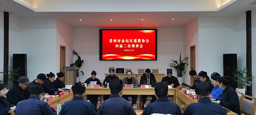 1月9日下午,常州市金坛区道教协会四届二次理事会议在茅山元阳观召开,区道协全体理事参加会议,金坛区委统战部副部长、区民宗局局长王国锋出席会议,会议由苏崇然道长主持。