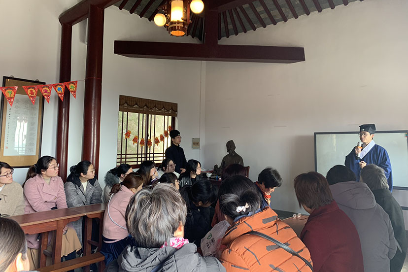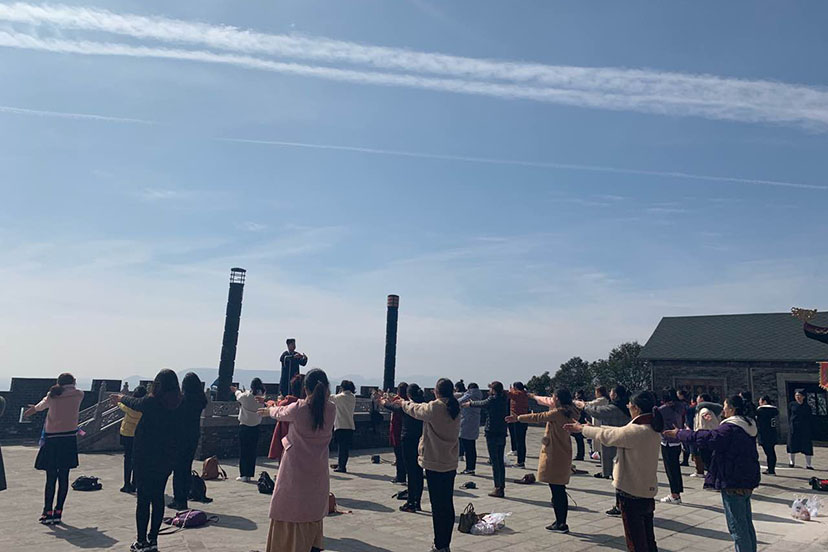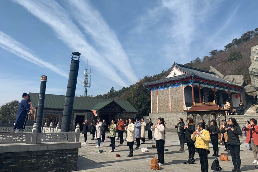 人间三月天,满山春意浓。元阳观道长带领妇联一行走在茅山南坡优美的登山道上,向大家介绍了茅山道教文化及道观历史沿革,并开展了一场道学讲堂和武当太极八段锦教学,分享了道教基本知识以及春季养生之道。
